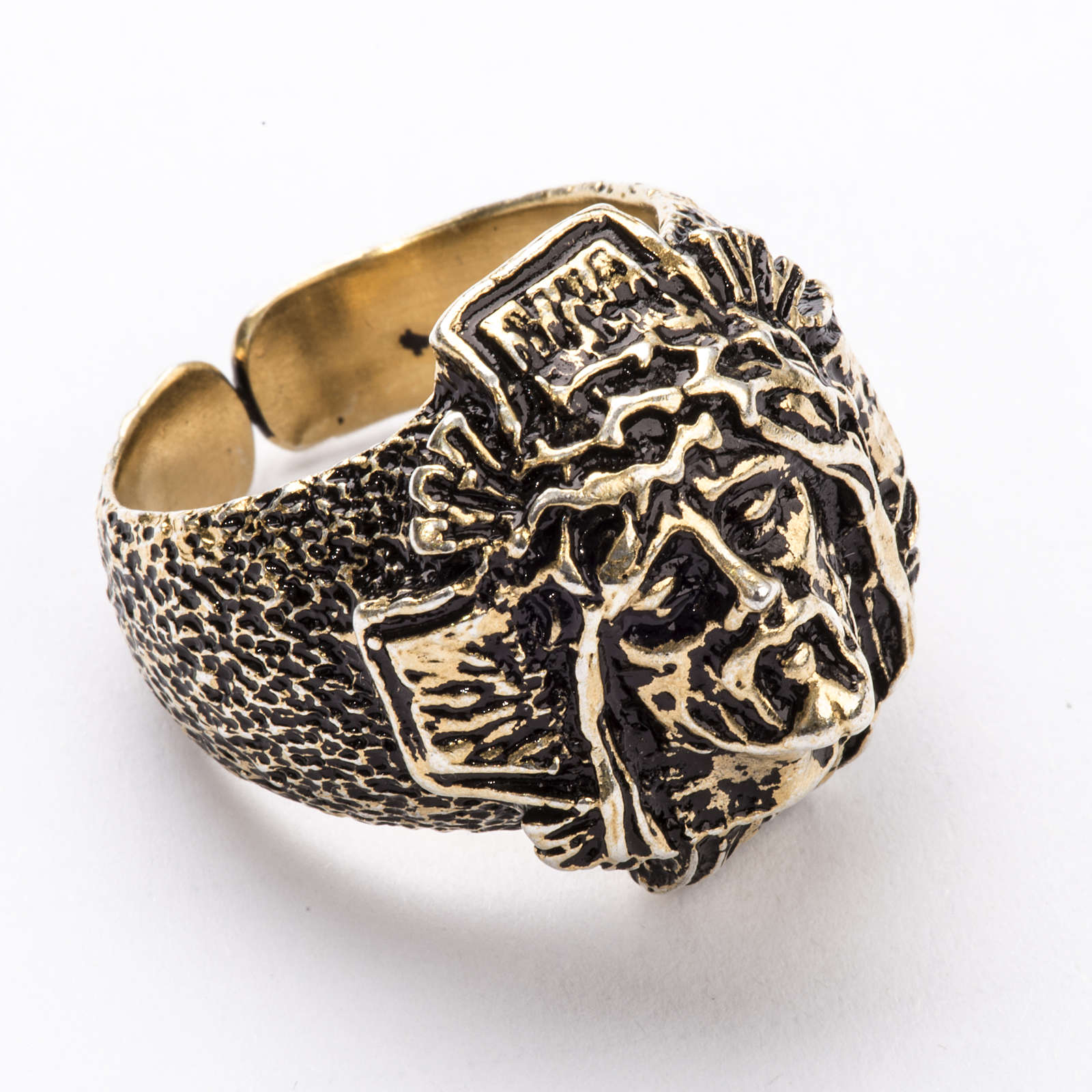 Anillo obispal realizada en plata 925 con efecto de bronce con la imagen del rostro de Cristo, hecha completamente a mano en Italia, por artesanos altamente calificados y expertos en el trabajo con la plata, es un producto de alta calidad.