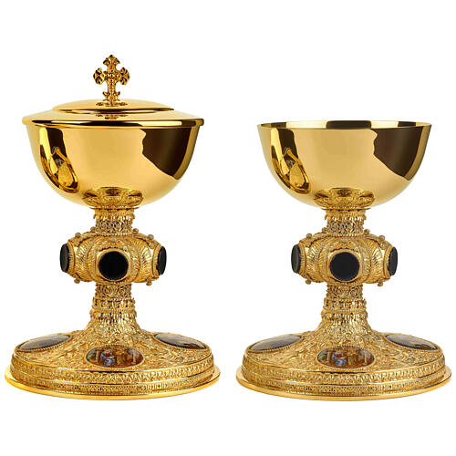 Cáliz copón patena plata maciza nudo ónix medallones esmalte Molina