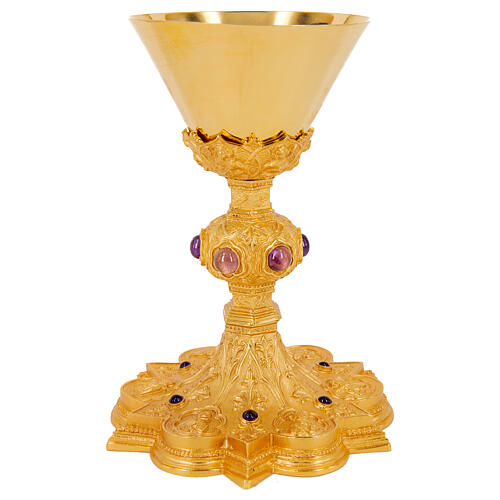 Cáliz Santa Trinidad gótico latón plateado acabado dorado h 20 cm