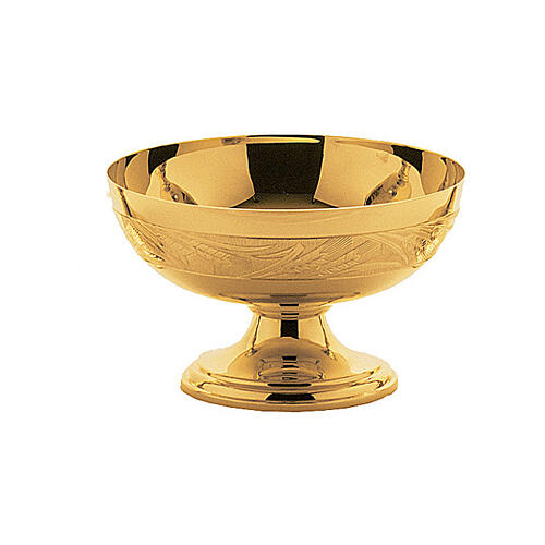 Patena para ofrendas Molina latón dorado banda de trigo y uva
