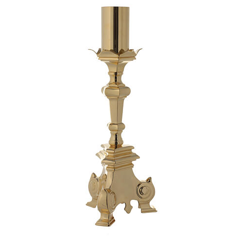Candelabro estilo barroco en latón dorado con una altura de 63 cm.