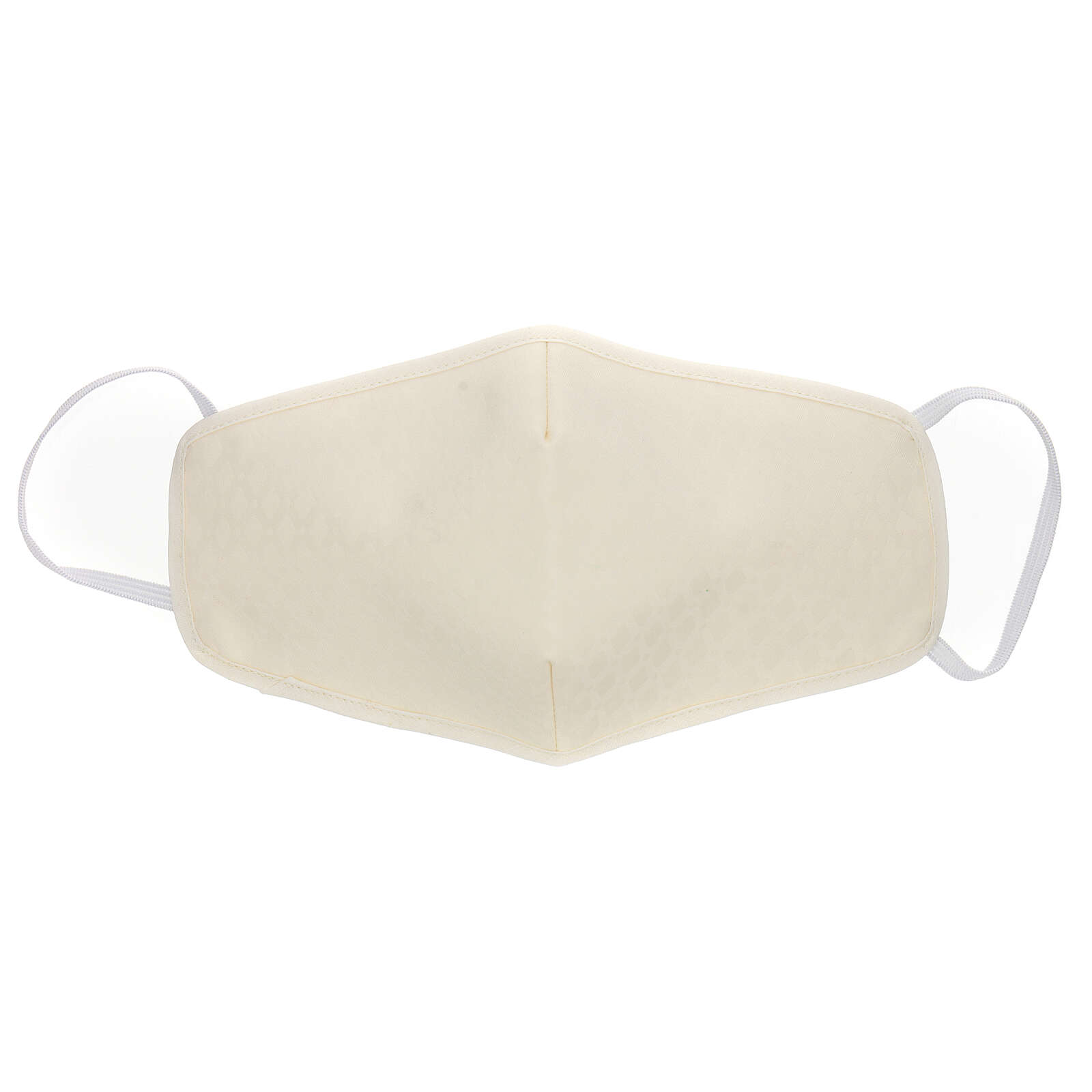 Mascarilla de tela de color marfil ideal para funciones litúrgicas con parte interior de 100% fibra de bambú y parte exterior de 100% poliéster.