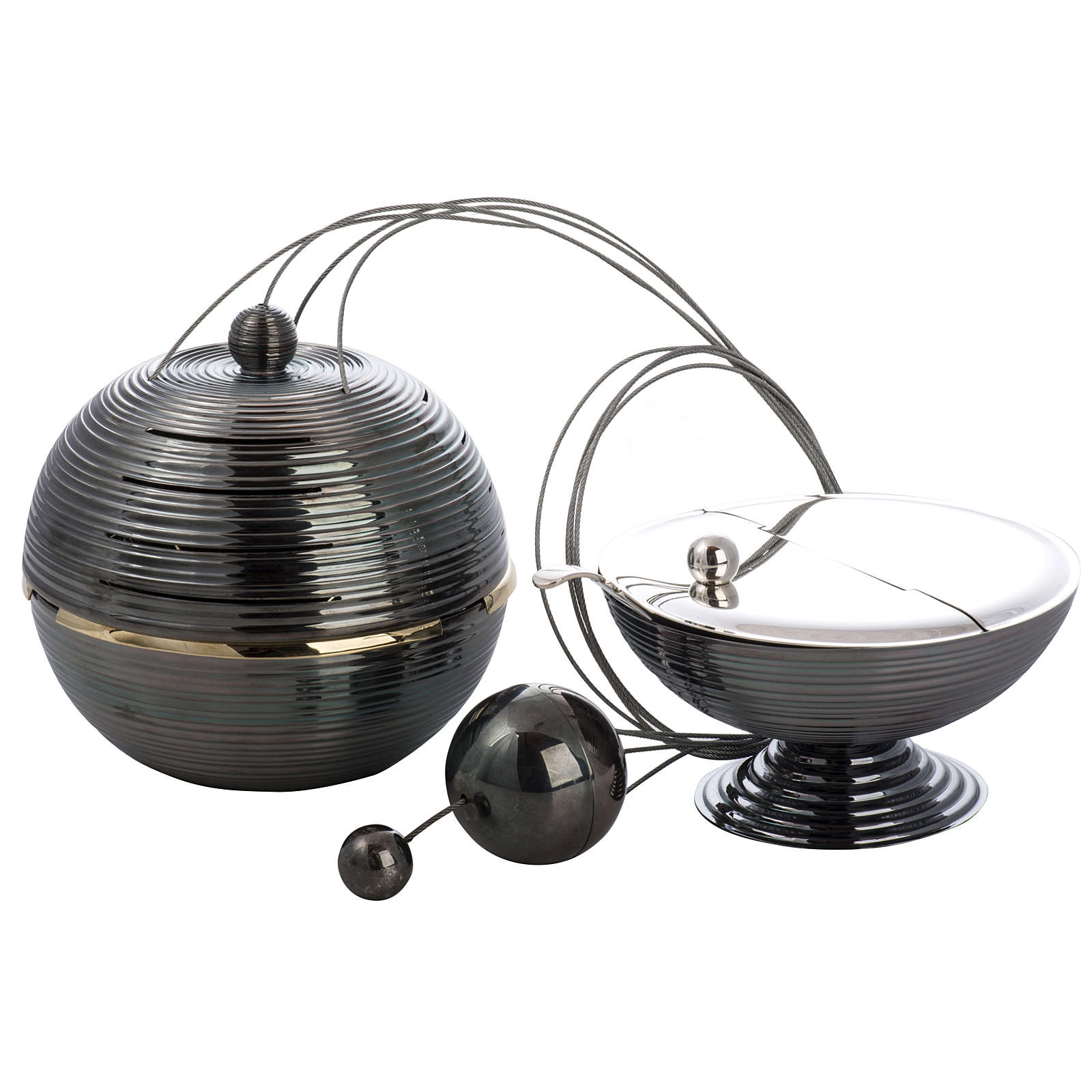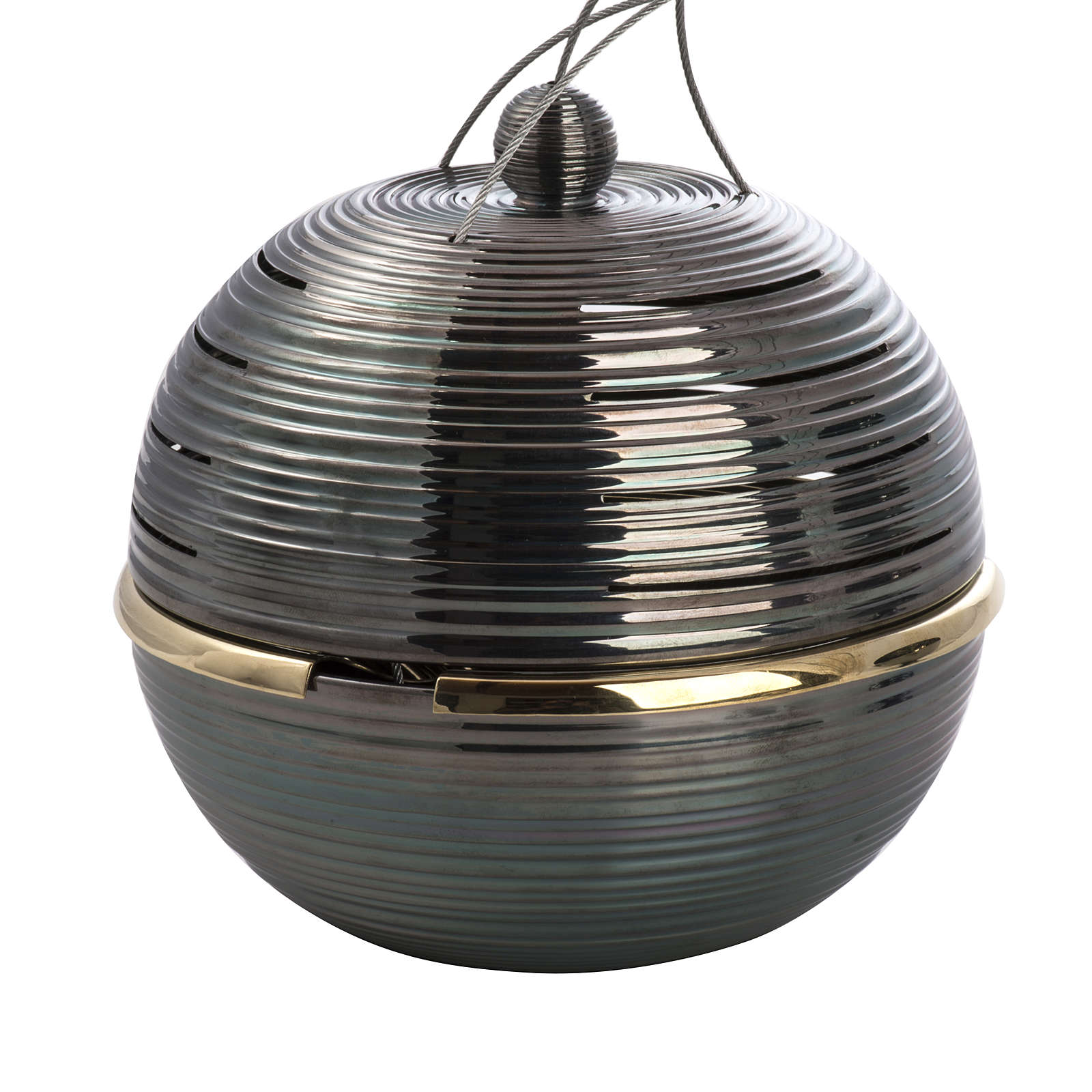 El incensario, se caracteriza por su decoración especial acanalada, es hecha completamente a mano, posee prácticos y resistentes cables en acero y un brasero de latón lúcido que se puede extraer.