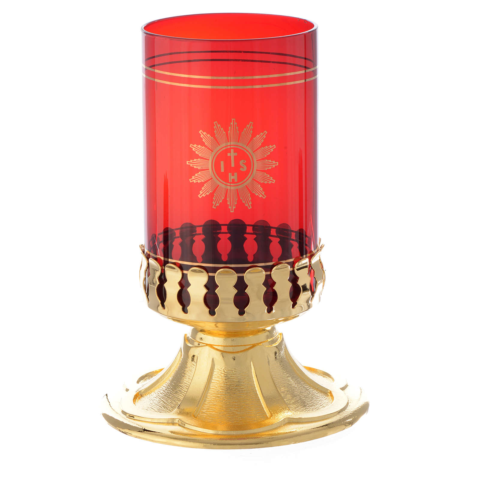 Lámpara para el Santísimo con base de latón para vidrio rojo y medio vidrio de 7,5 cm de diámetro.