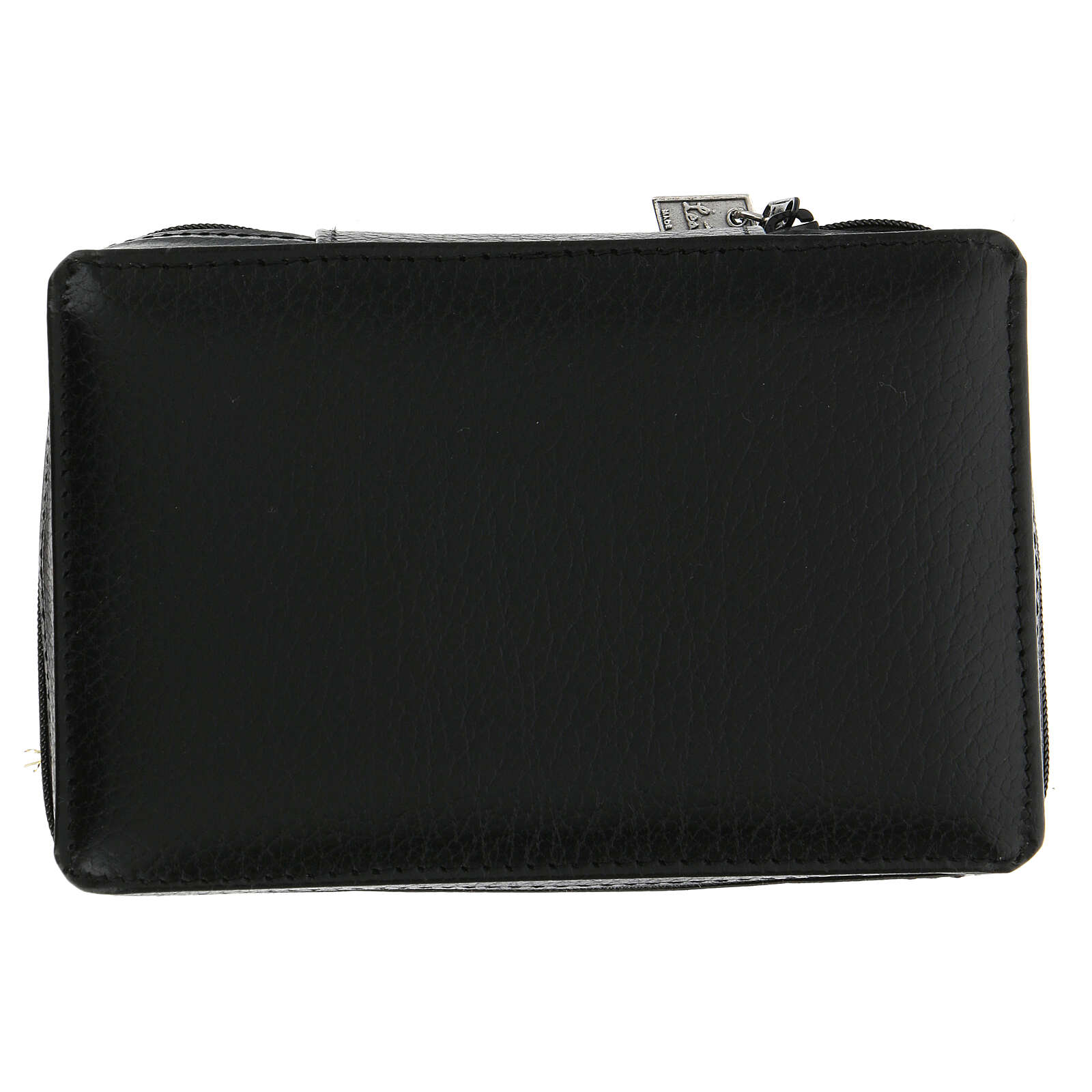 Estuche de cuero similar piel de foca de color negro en el exterior, el interior es de tejido rojo.