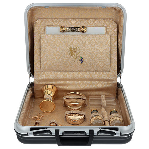 Un set litúrgico refinado y funcional, ideal para la celebración en cualquier lugar.