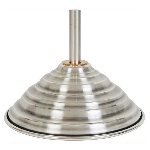 Base cónica para cruz procesional de latón con acabado satinado plateado y perno central para el encaje del asta.