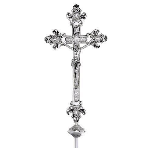 Cruz procesional 55x26 cm de latón fundido plateado.