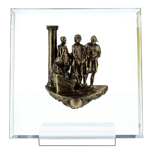 Vía Crucis 14 estaciones bronce y plexiglás h 15 cm Vía Dolorosa