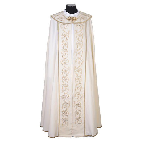 Disponible en los cuatro colores litúrgicos (marfil, verde, rojo y violeta). Capa fabricada íntegramente en los talleres Gamma de la familia Felisi, que desde hace más de medio siglo representan una excelencia textil Made in Italy especializada en paramentos sacros.