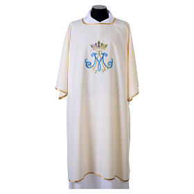 Dalmática Mariana margaritas parte anterior y posterior tejido Vatican 100% poli