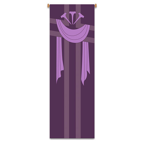 Estandarte Slabbinck de color violeta de 300x100 cm con cruz, sudario y clavos .