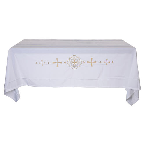 Mantel para altar de 160x300 cm con cruz bordada en hilo dorado.