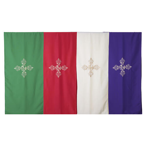 Disponible en los cuatro colores litúrgicos fundamentales (Blanco/Marfil, Rojo, Verde y Morado), se adapta a todas las celebraciones del Año Litúrgico.