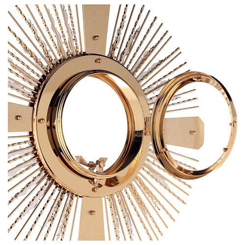 Ostensorio ángeles latón bicolor con piedras rojas 85 cm