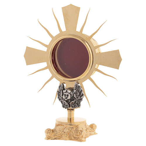 Relicario latón dorado con ángel 17 cm de alto. Diámetro vidrio: 5 cm. Relicario realizado en latón por un artesano italiano.