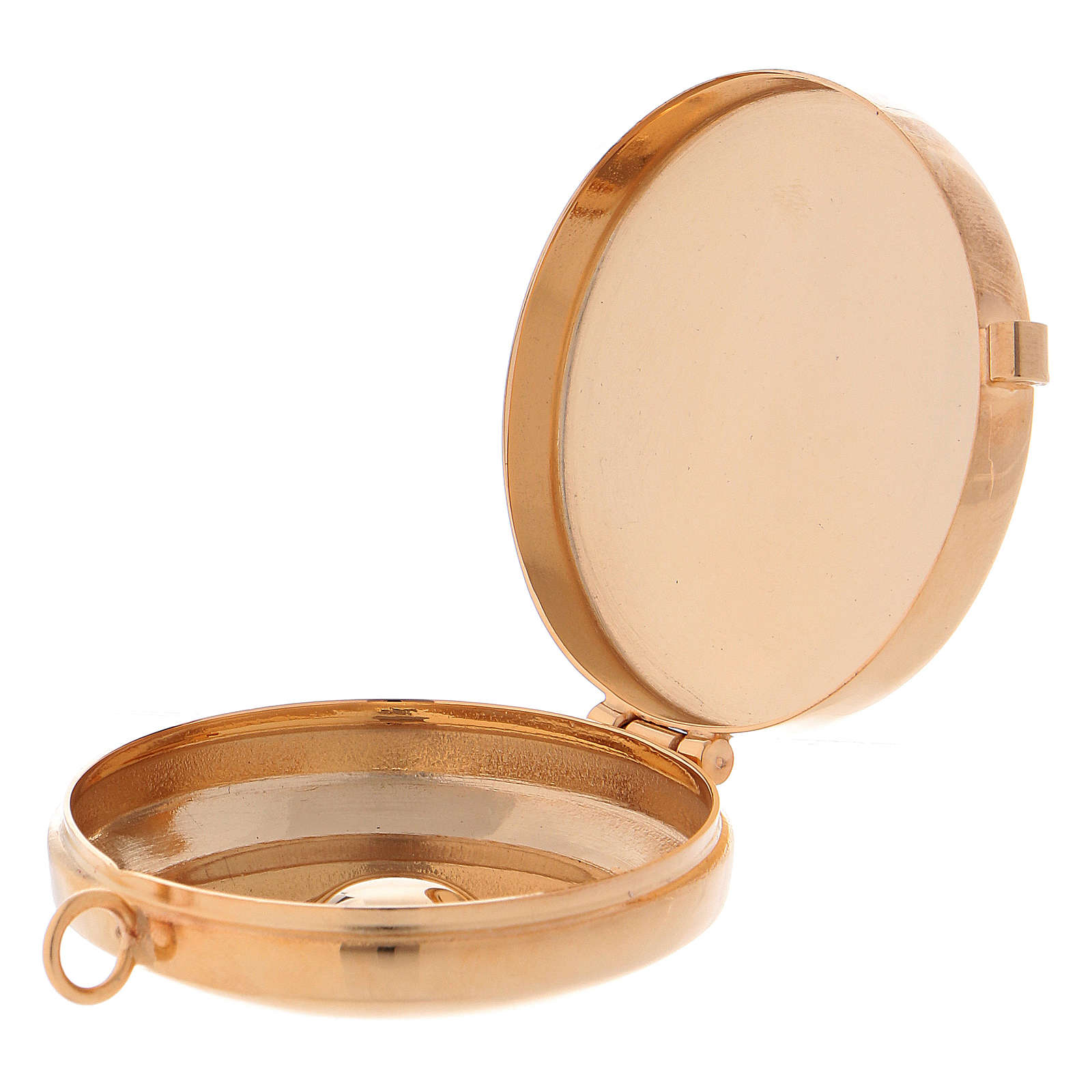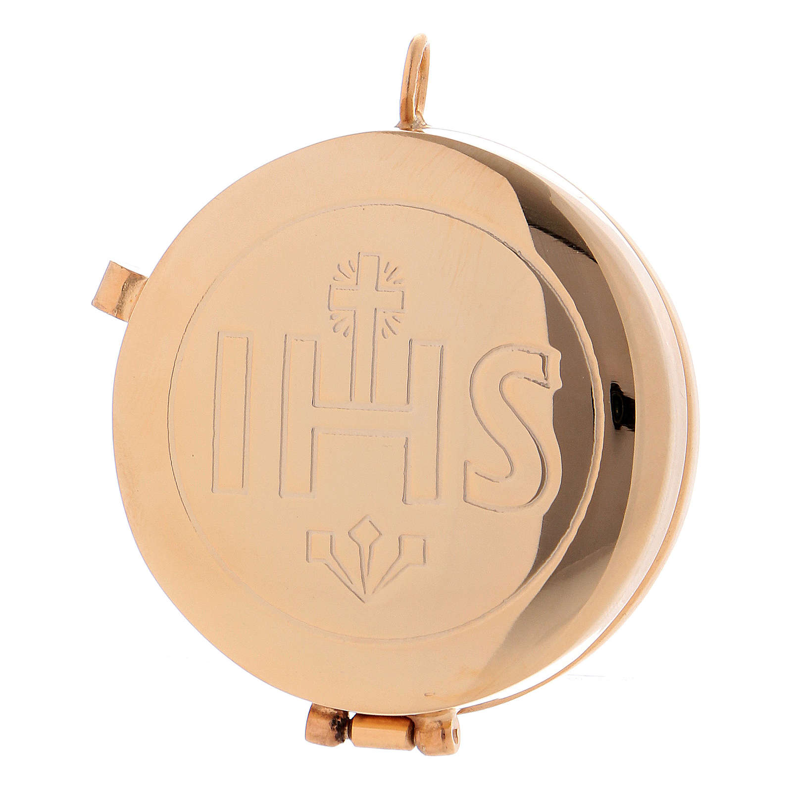Relicario Eucarístico simple de 6 cm de latón dorado lúcido con IHS.