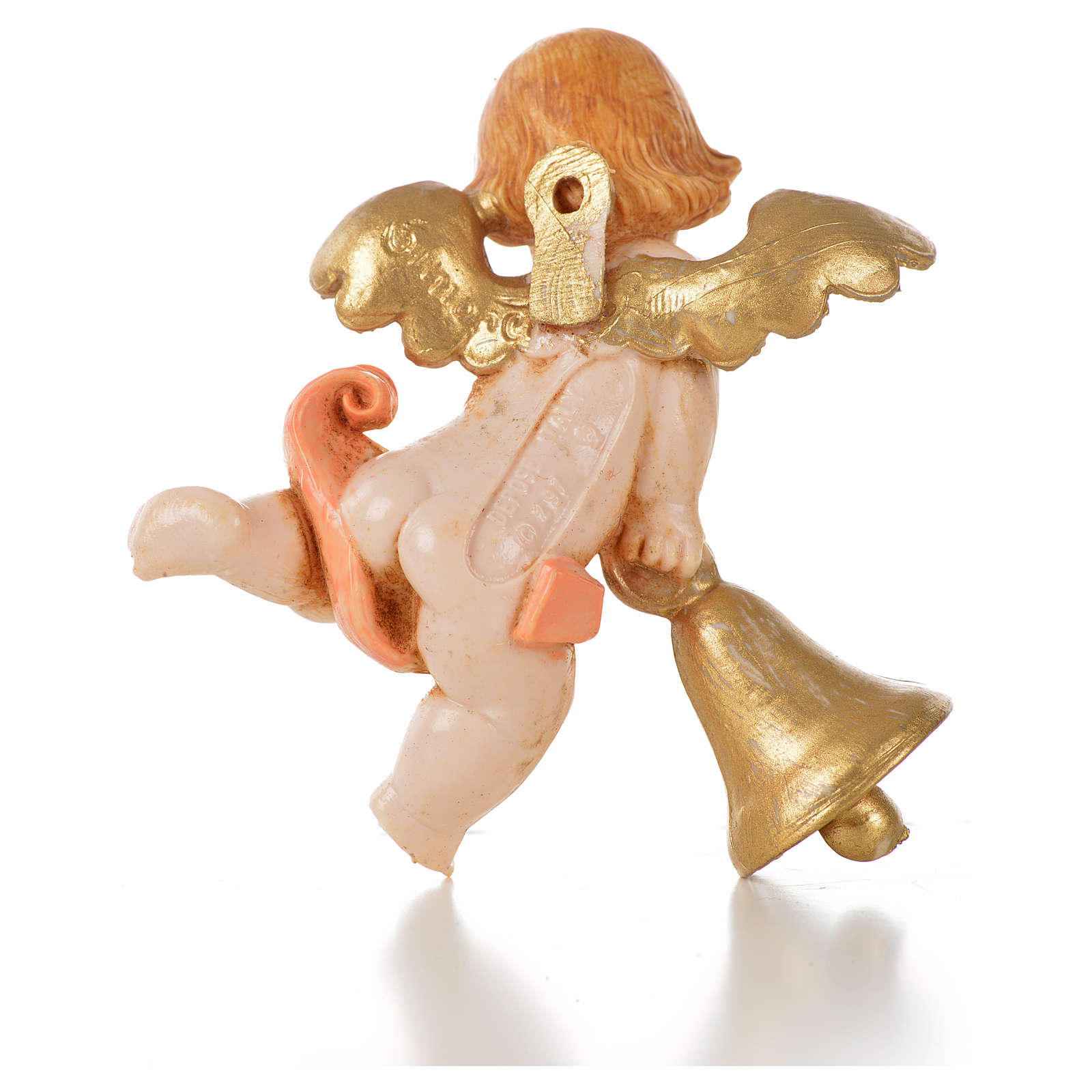 Ángel para colgar en la pared con campana rosada Fontanini 7 cm. Imagen realizada y pintada a mano en Italia.