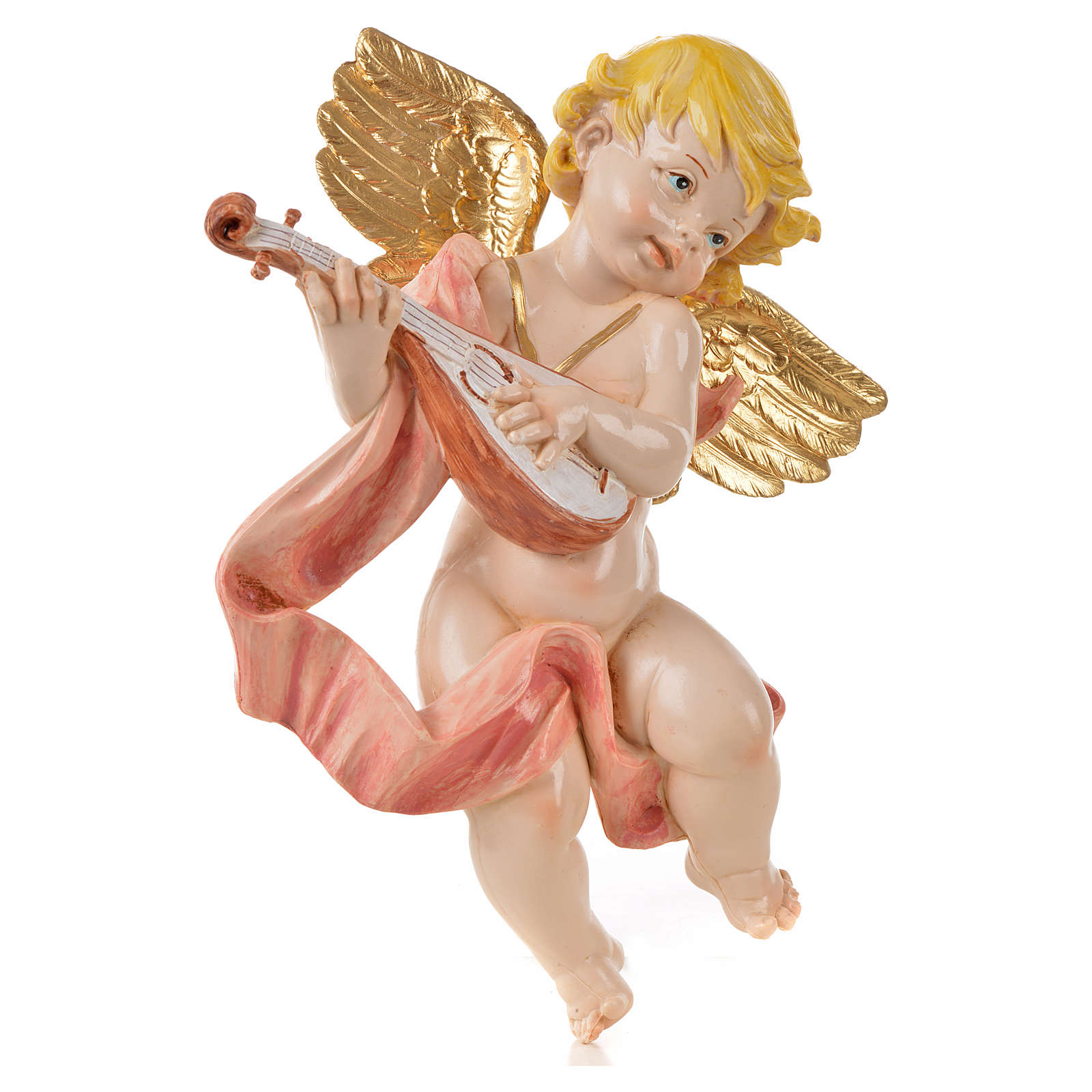Ángel con mandolina Fontanini cm. 27 en pvc con coloración símil porcelana. Imagen realizada y pintada a mano en Italia.