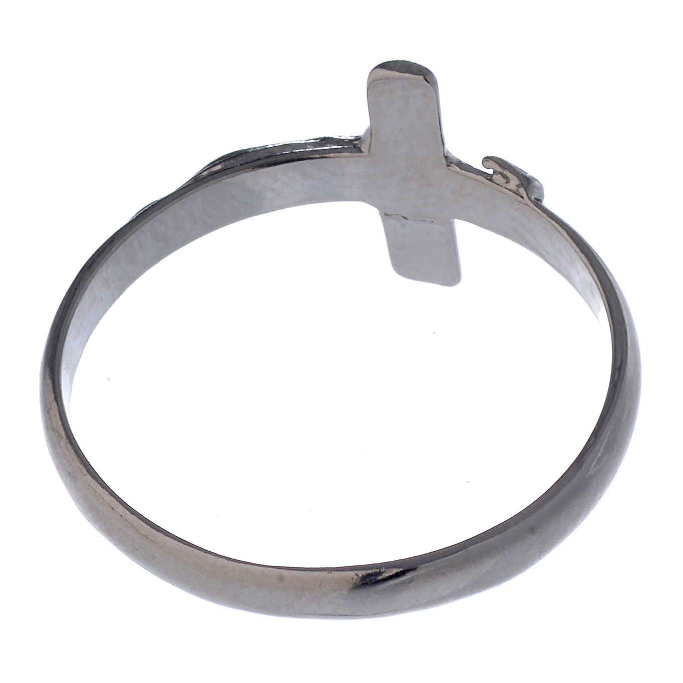 Anillo simple pero refinado y fino de plata. Me gustó la idea de tener a Jesús crucificado siempre debajo de nuestros ojos, lo que no era posible con un collar, para recordar cuánto amor nos ha dado y lo que también estamos llamados a hacer con nuestras manos. Una buena idea también para dárselo a aquellos que tal vez estén pasando por un momento de sufrimiento.