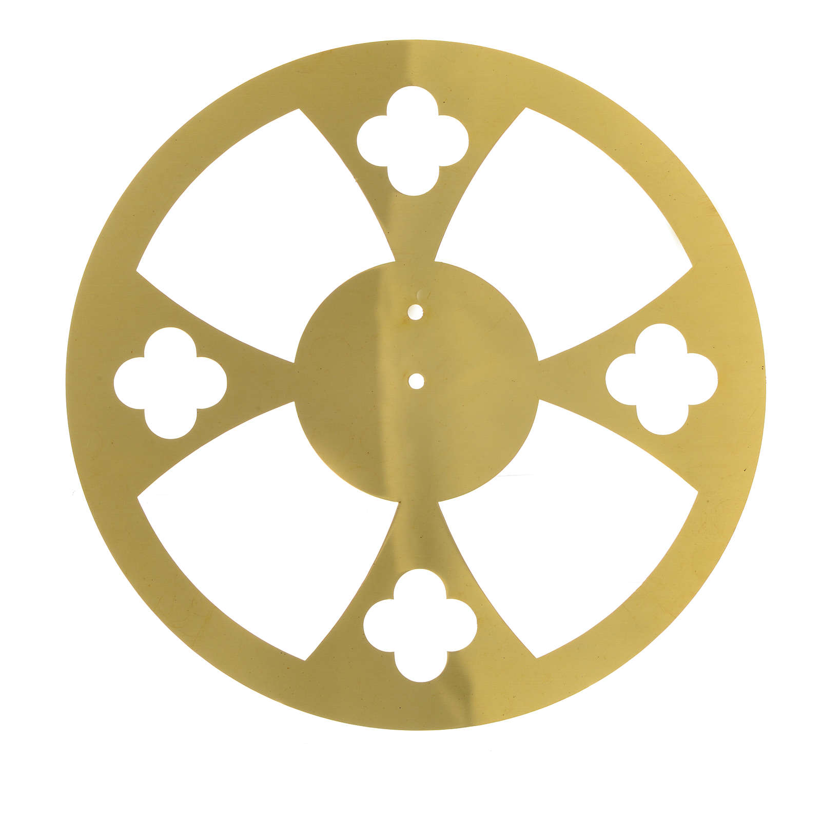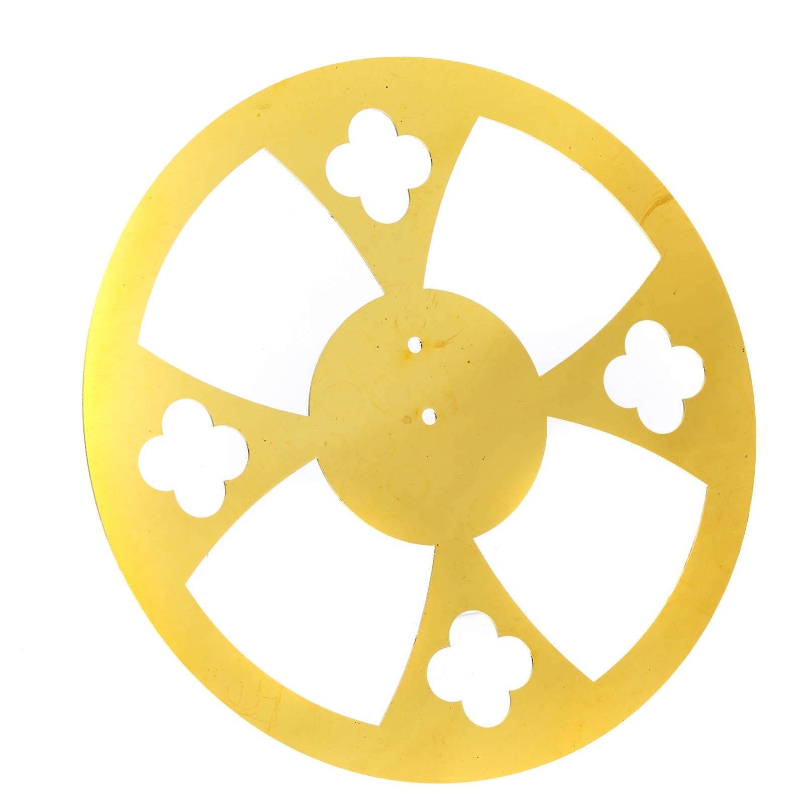 Aureola, hecha en latón dorado circular forma flores en su parte interna.