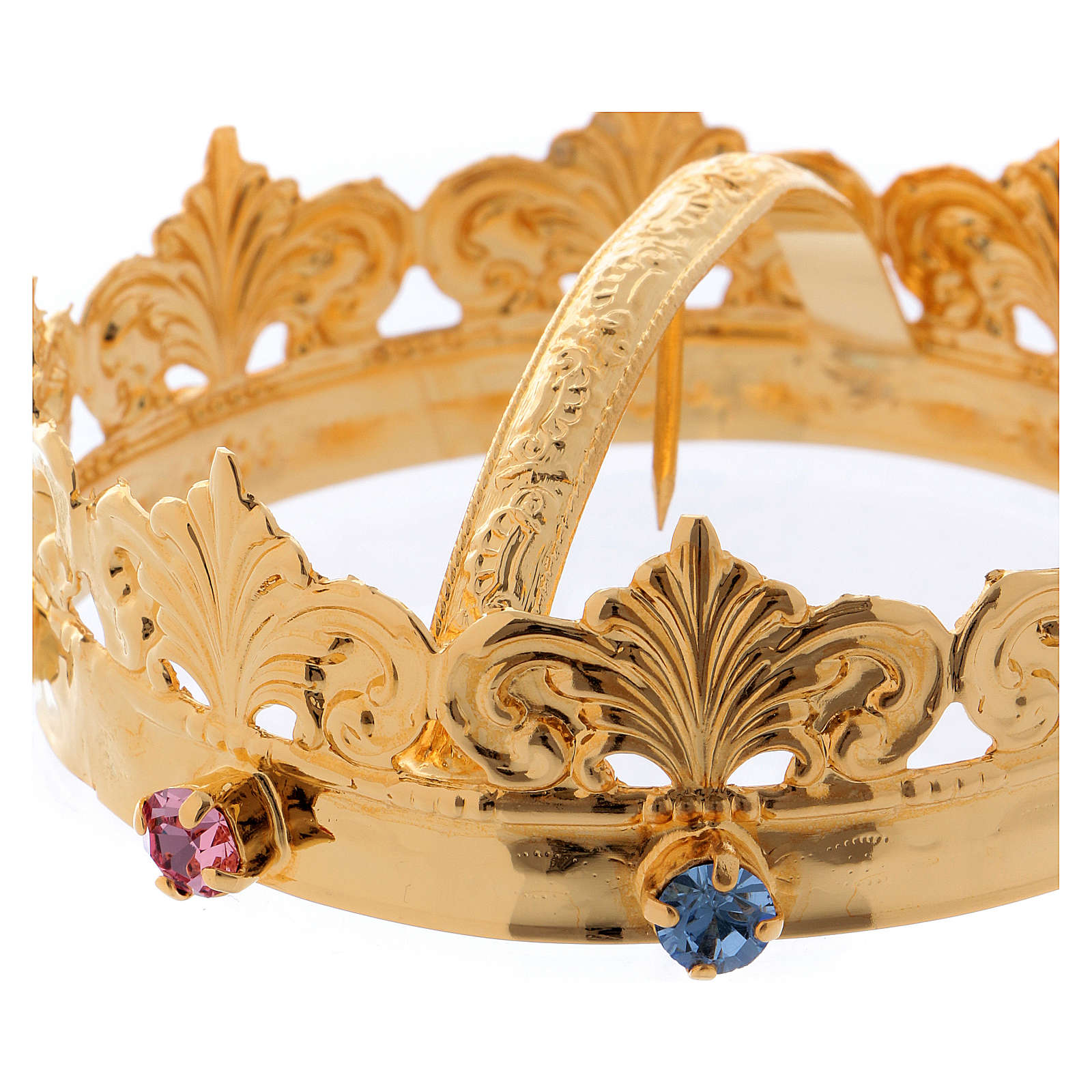 Corona con piedras rosas y azules realizada con gran cuidado de los detalles.
