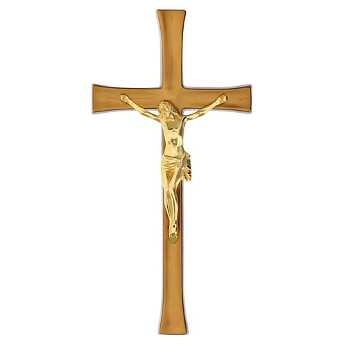 Crucifijo bronceado para pared con el cuerpo de Cristo dorado.