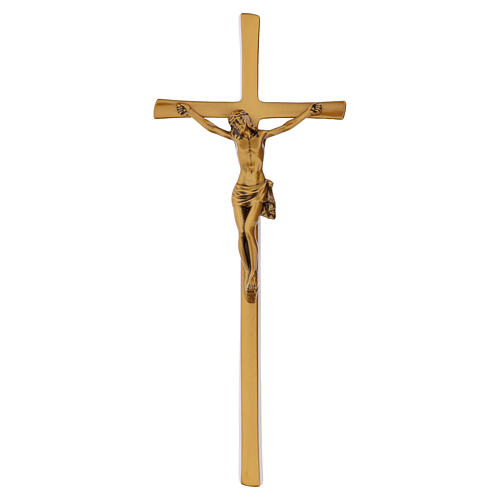 Cruz de pared con figura de Cristo en acabado bronceado.