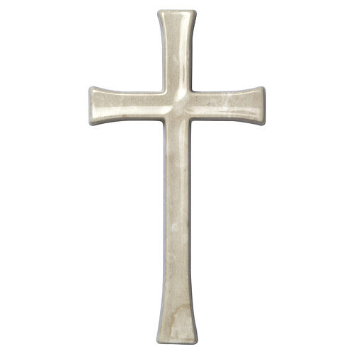 Cruz de pared latina con efecto mármol Botticino para exteriores y disponible en diferentes tamaños: 12x6,5 cm, 15x8 cm y 20x10 cm.