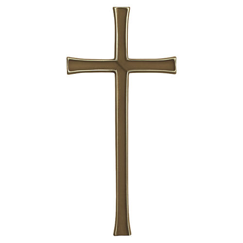Cruz de pared para fijar con pernos especiales incluidos, fabricada con latón bronceado esmaltado de color marrón. Este diseño moderno es ideal como complemento para lápidas.