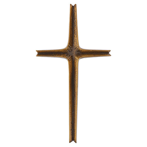Cruz funeraria de pared realizada en aleación metálica con acabado en bronce.