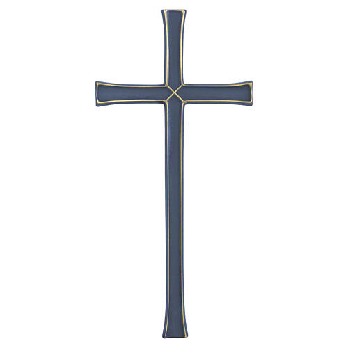 Cruz latina de bronce con esmalte azul para uso en exteriores.