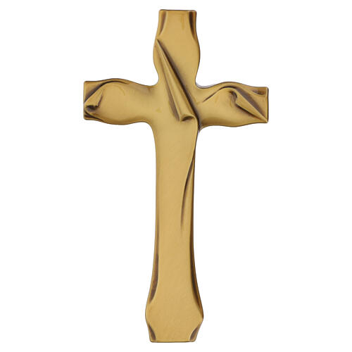 Cruz funeraria de pared realizada con aleación metálica y con acabado en bronce.