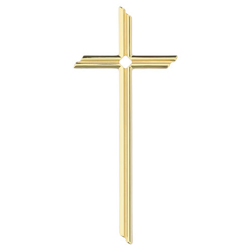 Cruz latina de latón bronceado con acabado de color dorado, elaborada en Italia en una fundición especializada.