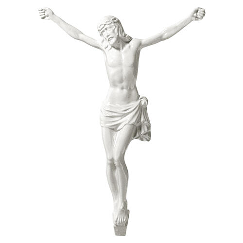 Cuerpo de Cristo con aplicación de esmalte blanco para colgar en paredes exteriores.