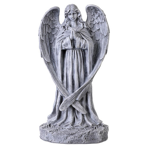 Estatua ángel en oración para exterior 40 cm de resina efecto piedra