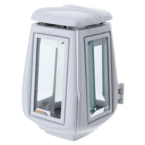 Lámpara de cementerio de esmalte blanco para velas de 6 cm.