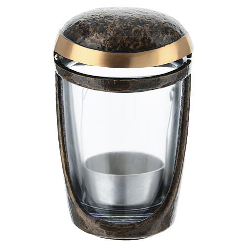 Lámpara para velas de bronce envejecido para velas de hasta 8 cm de diámetro.