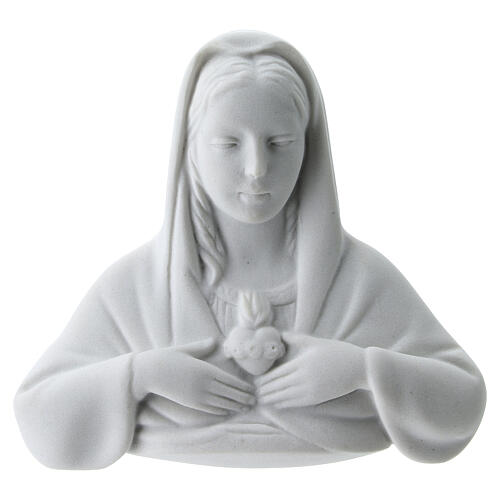 Inmaculado corazón, de decoración en relieve, tiene una medida de 11 cm, para aplicaciones, es realizado en polvo de mármol de Carrara, conocido también como mármol sintético. Son trabajados con mucha atención para cuidar cada mínimo detalle.