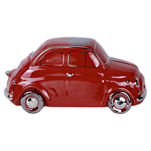 Urna cineraria coche de cerámica esmaltada con detalles rojos