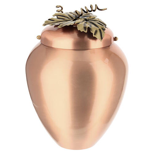 Urna cineraria de cobre con pámpano decorativo 25 cm