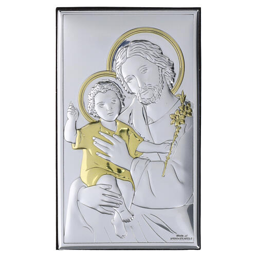 Cuadrito San José y Niño Jesús plata bilaminado y oro Valenti 10x5 cm