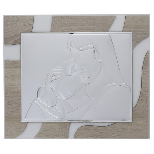 Cuadro bilaminado de plata con la Sagrada Familia de 45x55 cm.