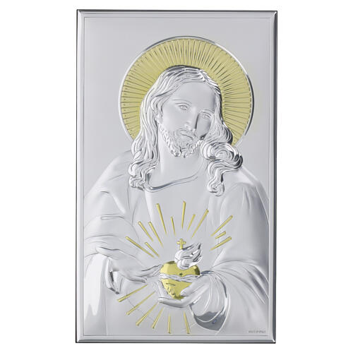 Icono Sagrado Corazón Cristo Valenti bilaminado oro plata 20x10 cm