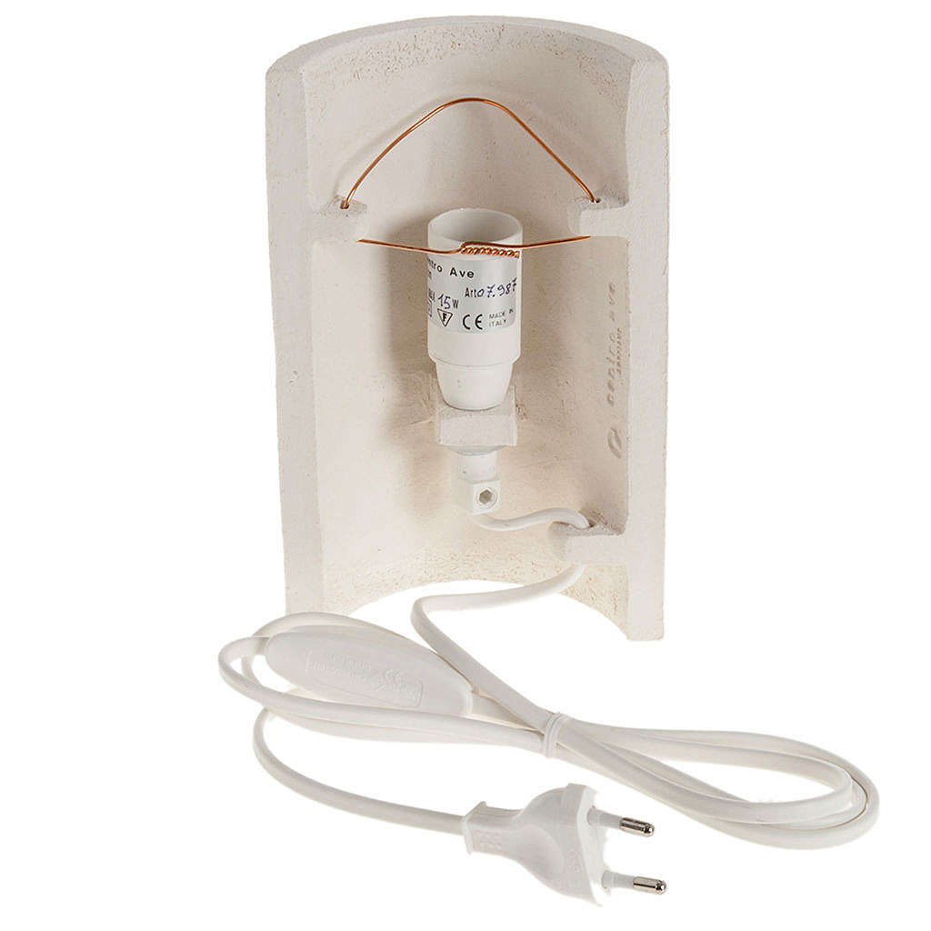 Bajorrelieve en arcilla refractaria modelo " María Dorada" con iluminación con una medida de 17,5 cm de altura.