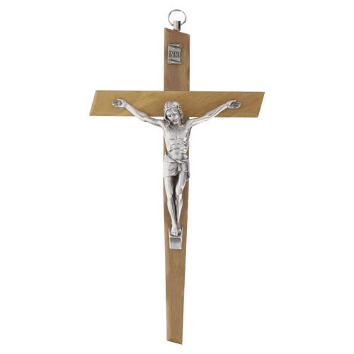 Crucifijo madera olivo cuerpo metal plateado 20 cm