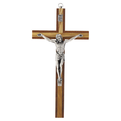 Crucifijo pared caoba olivo cuerpo metal 25 cm