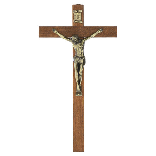 Cruz de pared 30 x 15 cm madera oscura con Cristo de latón