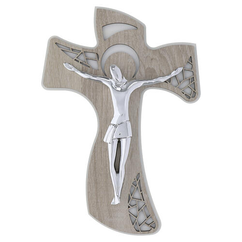 Tau de pared de madera Cristo estilizado plateado 35x25 cm