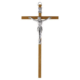 Crucifijo redondeado moderno de madera de peral 16 cm con cuerpo plateado
